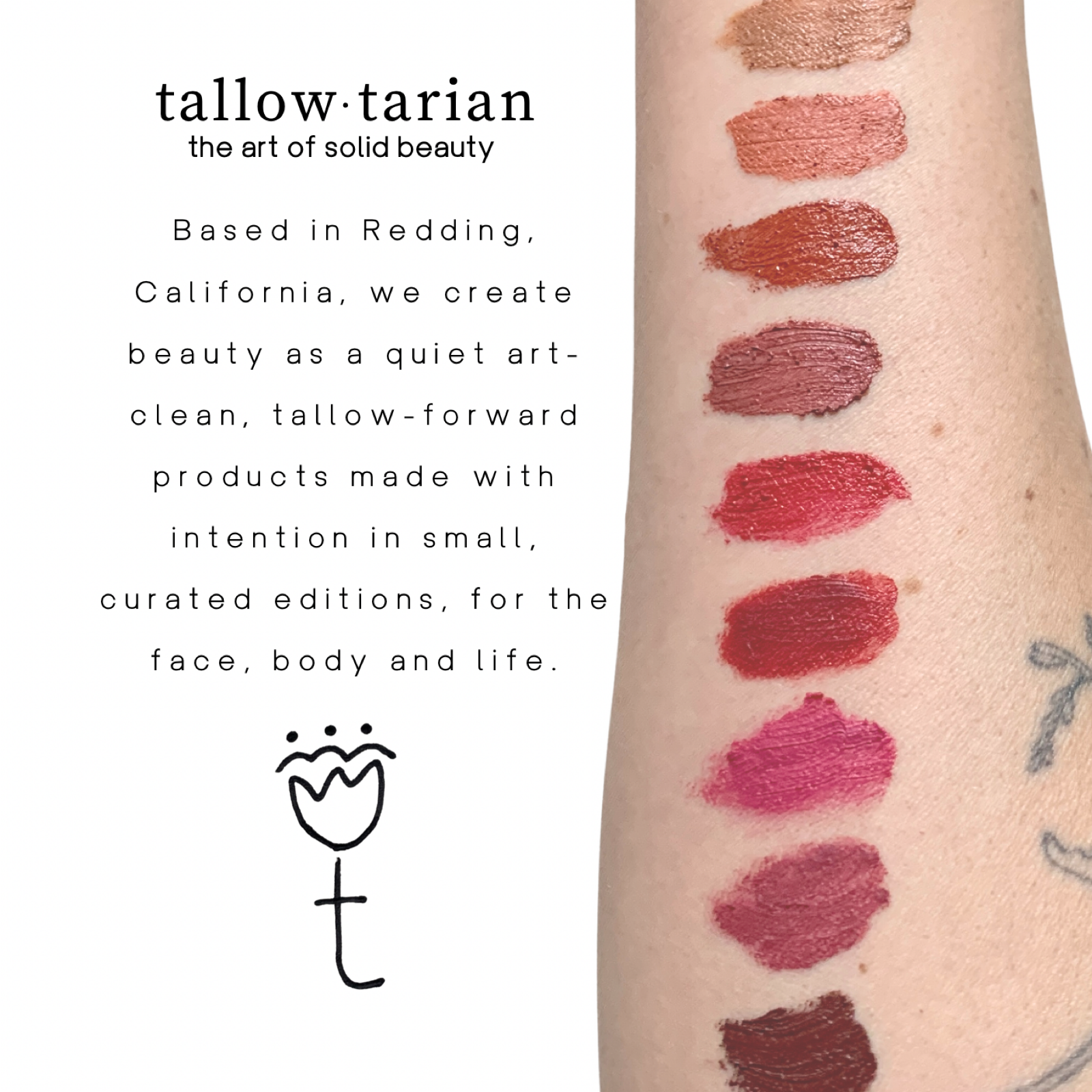 She uses pure, grass fed/finished tallow as a medium to create clean and ultra-hydrating skin care and makeup you can feel good about using and that your skin will adore.
